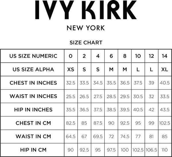Please refer to the size chart. Ivy Kirk items run slightly oversized.