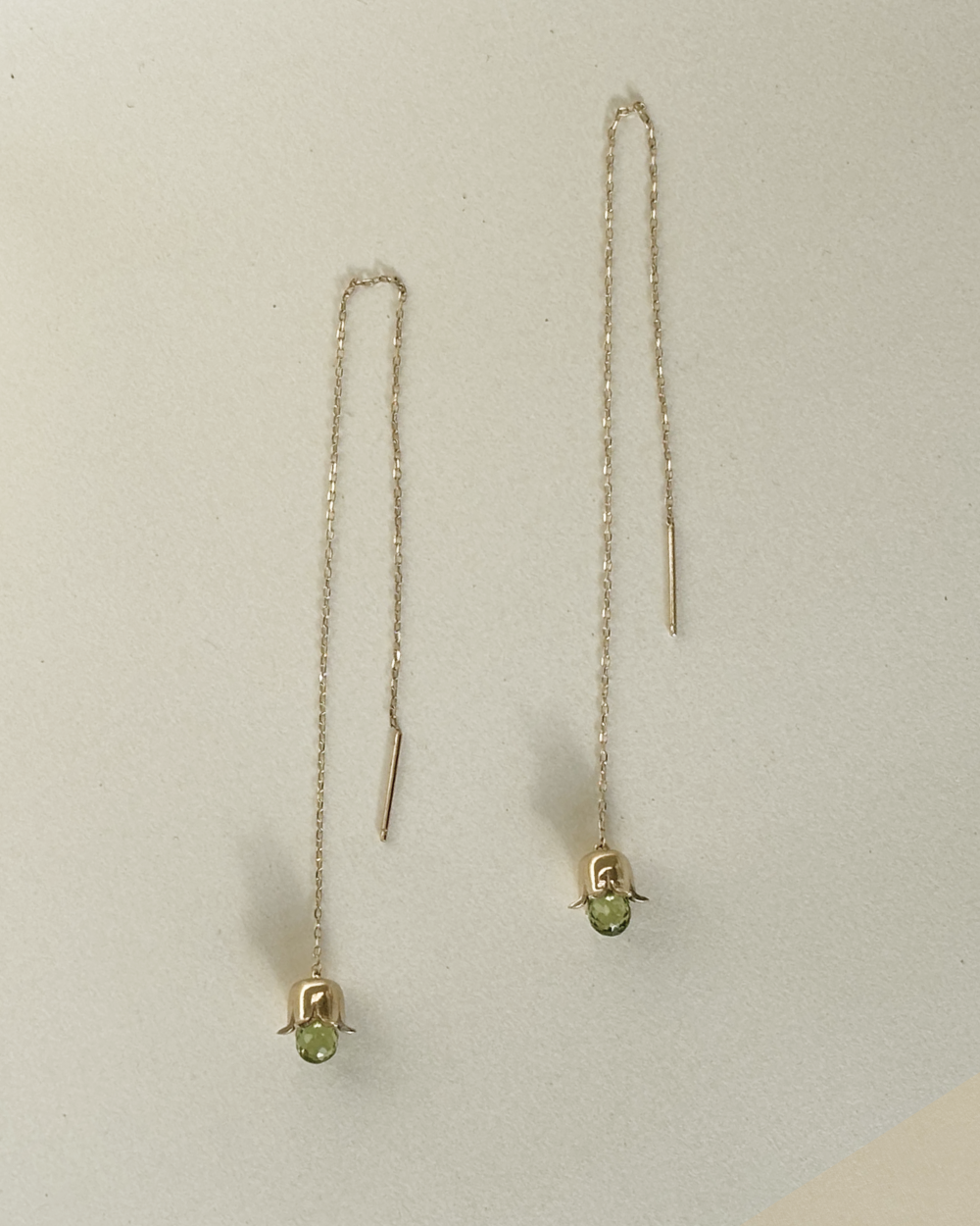 Peridot Threader Earrings: crafted in 14k yellow gold with two small natural briolette peridot. Designed for the wedding day and beyond—finished by hand in small batches.