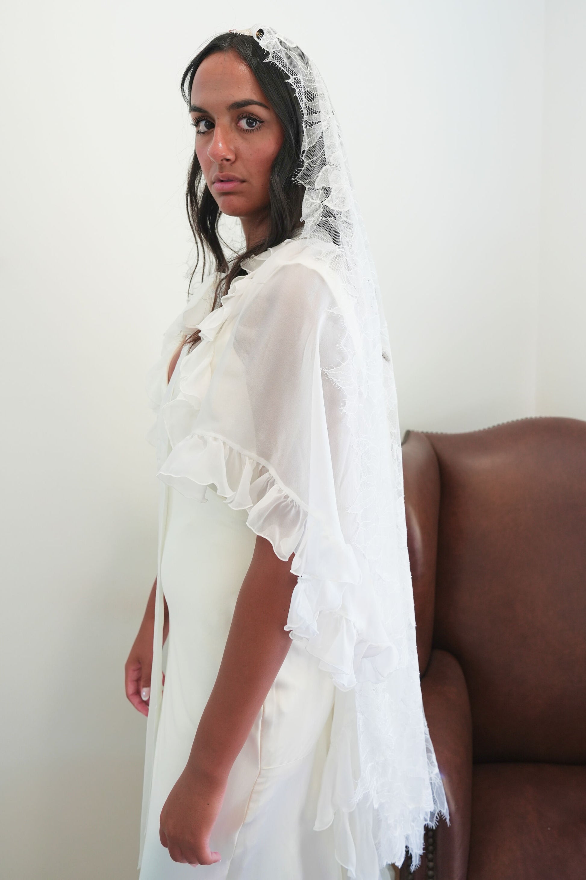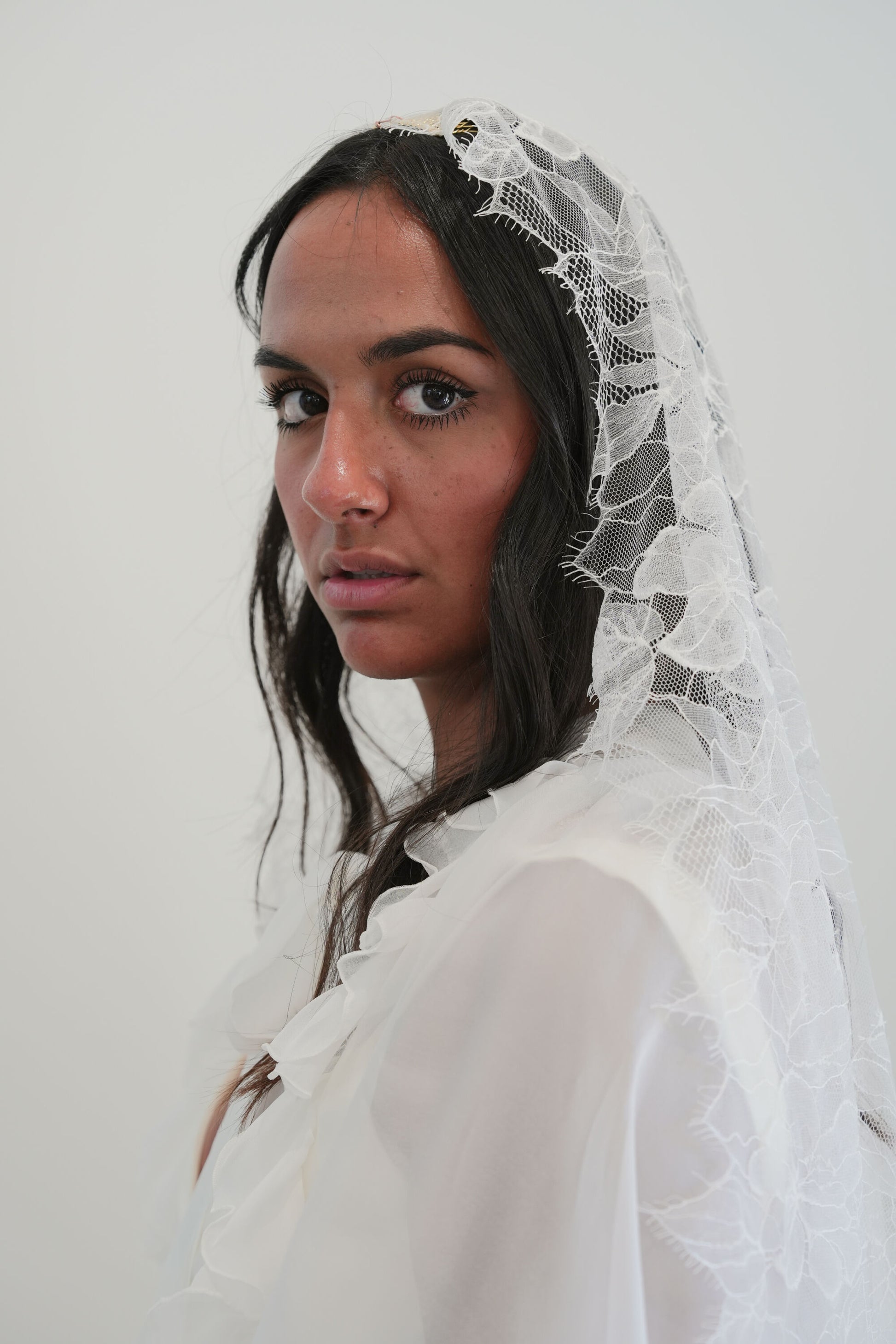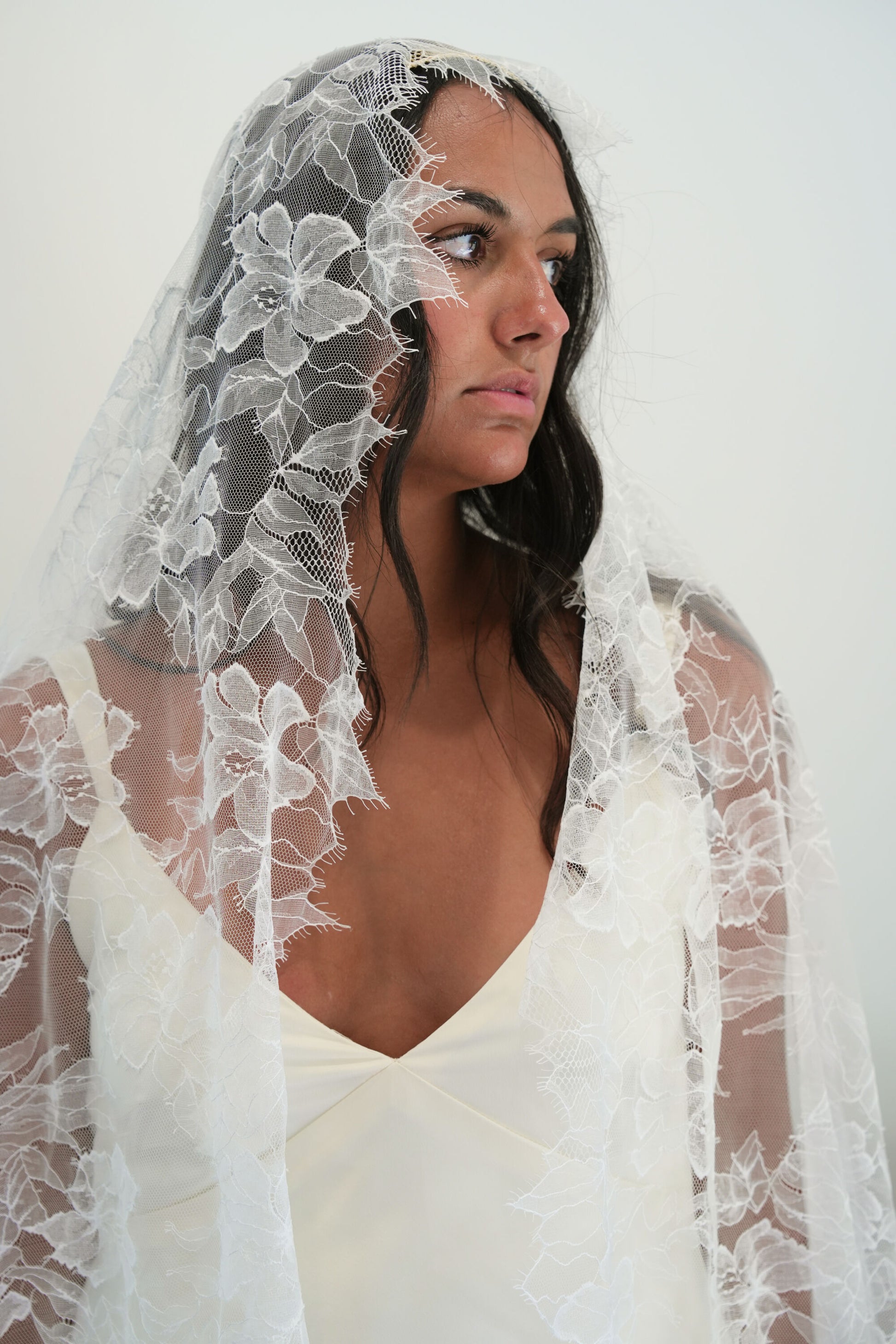 Venus: the goddess of love. Is there any other way to personify your love other than with a veil entirely made of Chantilly lace? This extraordinary veil is carefully crafted for the most fashion-forward of brides.